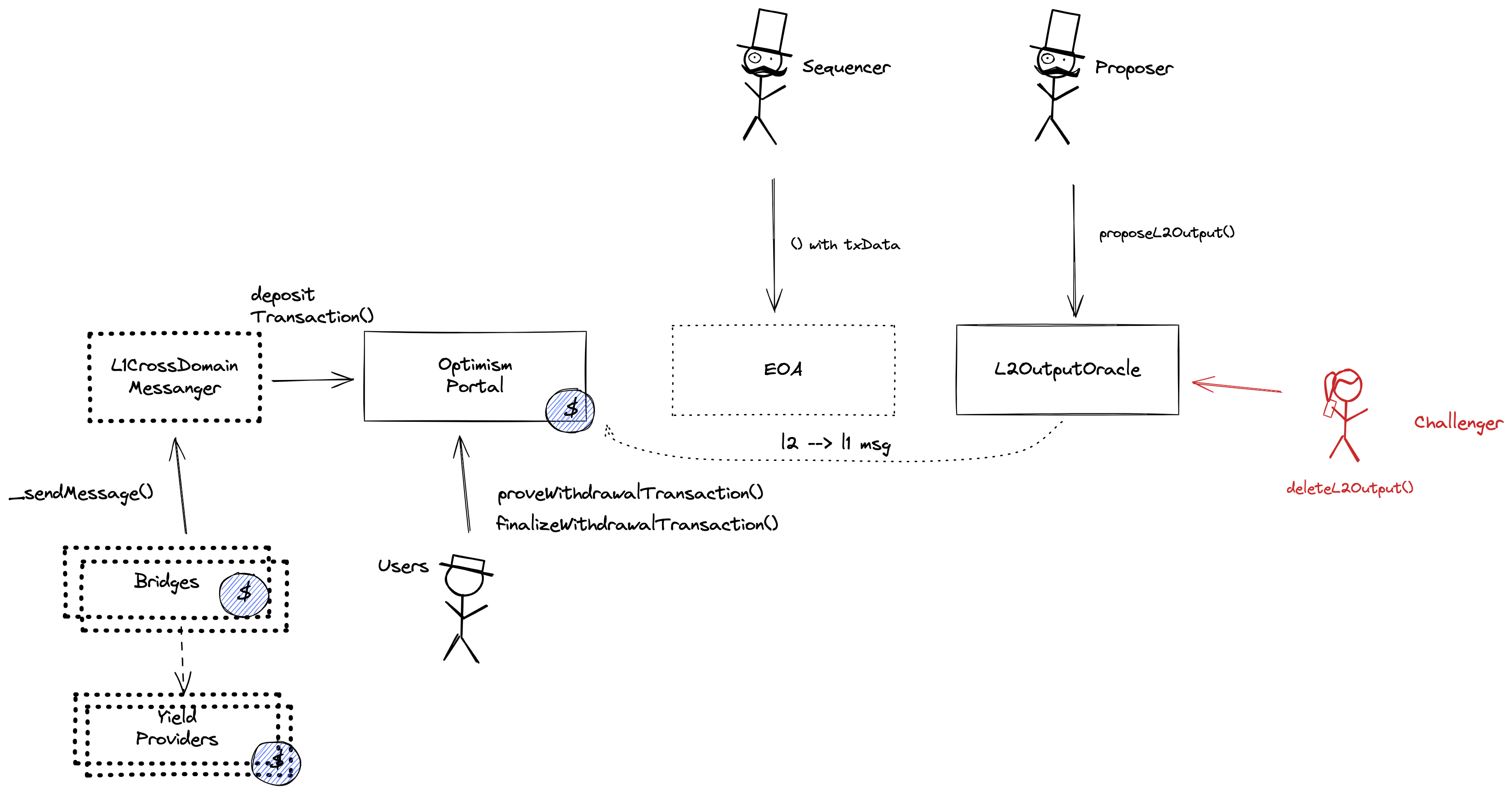 OP Stack projects can use the OP fault proof system, already being deployed on some. This project though is not using fault proofs yet and is relying on the honesty of the permissioned Proposer and Challengers to ensure state correctness. The smart contract system permits invalid state roots.